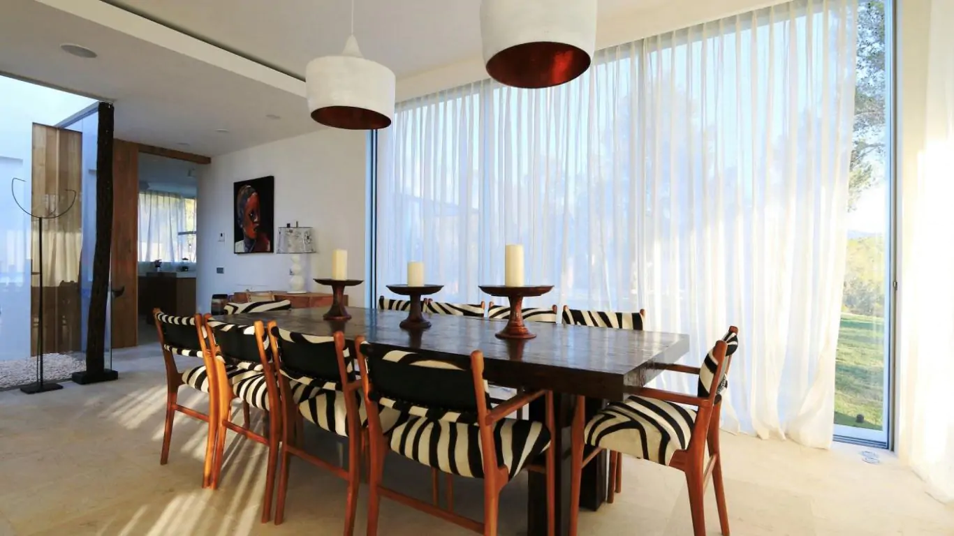 Villa Can Benimussa is a stunning contemporary residence set on nearly an acre of lush hilltop terrain. Surrounding by fragrant Mediterranean flora, this villa offers magnificent far-reaching views that extend to the distant silhouette of the Balearic sea. Nestled in Ibiza’s coastal beauty, this luxury vacation rental combines seclusion and serenity with panoramic vistas over San Antonio Bay, making it an ideal destination for rejuvenation and reconnecting with nature.