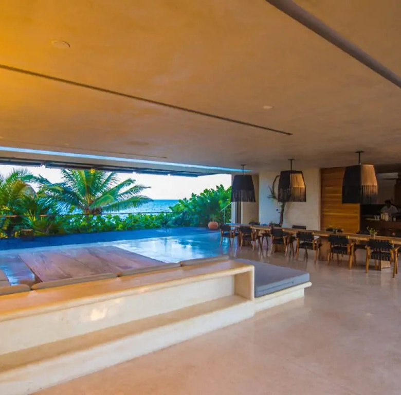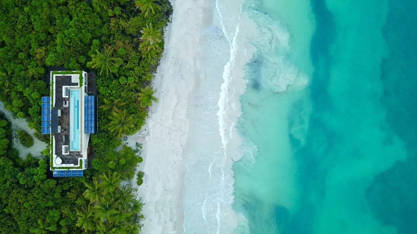 Alux presents Villa Naiik, an extraordinary sanctuary embracing three hundred feet of secluded beachfront. Immersed in the untamed allure of the Yucatan, this residence occupies four acres of lush, untouched jungle. Secluded from the hustle and bustle of urban life, Naiik assures unparalleled privacy and tranquility, cocooned between the azure Caribbean Sea and a mystical Mayan lagoon.
