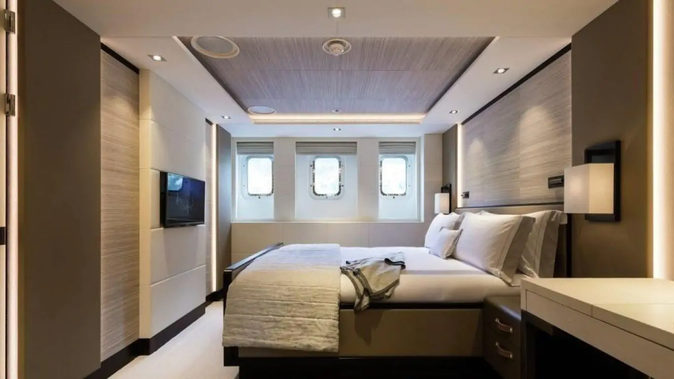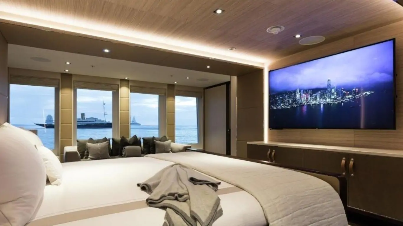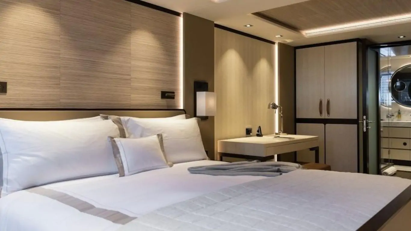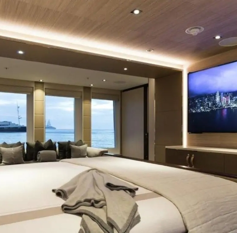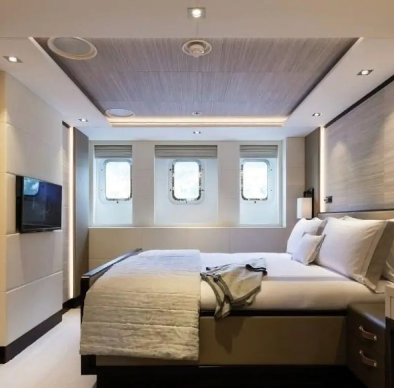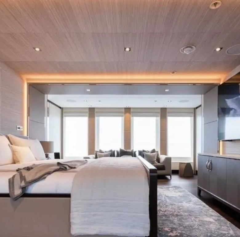 The interiors are a testament to timeless luxury and refined aesthetics. Imbued with enduring sophistication, the design features sumptuous seating arrangements and exquisite furnishings that seamlessly blend to create an atmosphere of unparalleled elegance. The use of premium materials and meticulous craftsmanship enhances the overall ambiance, ensuring a sense of opulence and comfort. Accommodating up to 12 guests in six rooms, including a master suite, VIP stateroom, two double cabins, two twin cabins, and two Pullman beds, Laurentia 181 ensures a comfortable retreat. The vessel also accommodates a crew of up to 13, guaranteeing a refined and relaxed yachting experience. Additional amenities, such as air conditioning, a beach club, on-deck Jacuzzi, at-anchor stabilizers, stabilizers underway, and onboard WiFi, contribute to an enhanced onboard experience.