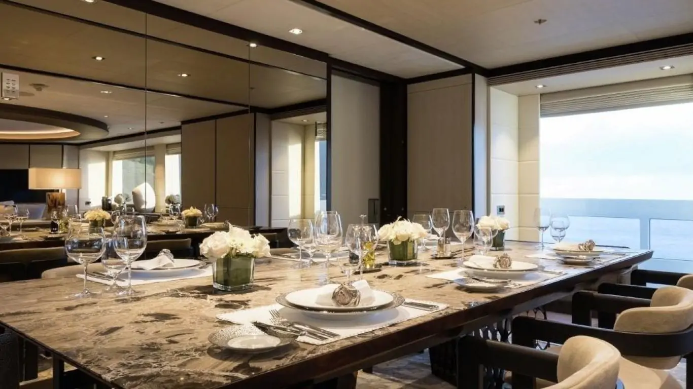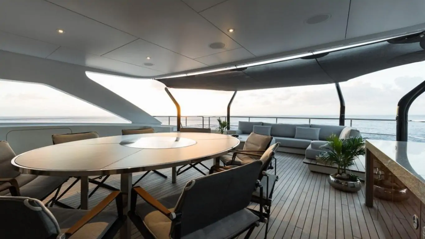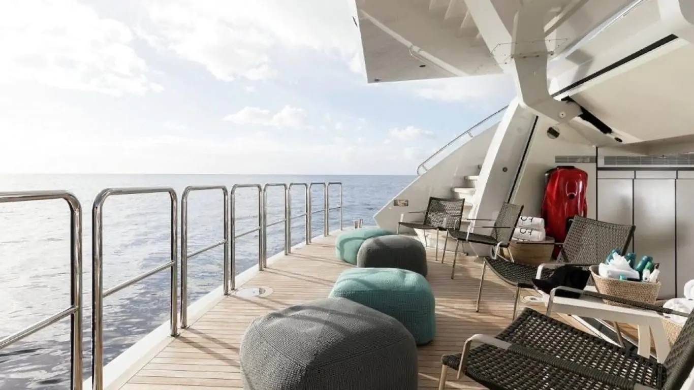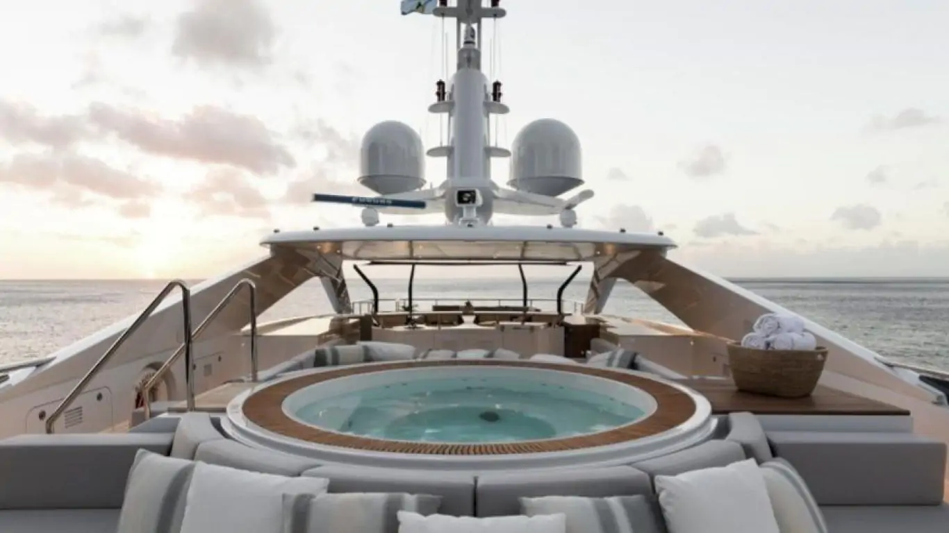 The interiors are a testament to timeless luxury and refined aesthetics. Imbued with enduring sophistication, the design features sumptuous seating arrangements and exquisite furnishings that seamlessly blend to create an atmosphere of unparalleled elegance. The use of premium materials and meticulous craftsmanship enhances the overall ambiance, ensuring a sense of opulence and comfort. Accommodating up to 12 guests in six rooms, including a master suite, VIP stateroom, two double cabins, two twin cabins, and two Pullman beds, Laurentia 181 ensures a comfortable retreat. The vessel also accommodates a crew of up to 13, guaranteeing a refined and relaxed yachting experience. Additional amenities, such as air conditioning, a beach club, on-deck Jacuzzi, at-anchor stabilizers, stabilizers underway, and onboard WiFi, contribute to an enhanced onboard experience.